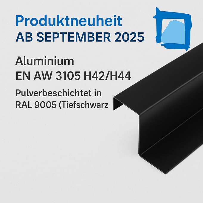 Ab sofort bei uns erhältlich: pulverbeschichtetes Aluminium EN AW-3105 (Zustände H42 / H44) in edlem RAL 9005 Tiefschwarz.